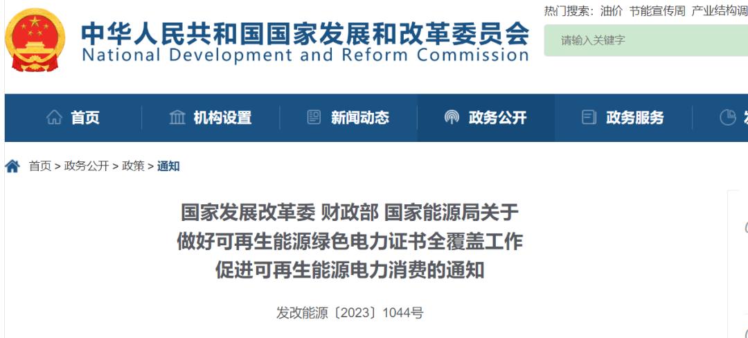 近日,国家发展改革委、财政部、国家能源局发布《关于做好可再生能源绿色电力证书全覆盖工作促进可再生能源电力消费的通知》(以下简称为《通知》)。