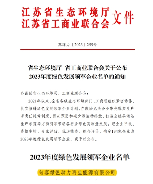 近日,江苏省生态环境厅、江苏省工商业联合会联合下发了《关于公布2023年度绿色发展领军企业名单的通知》,公布了2023年度绿色发展领军企业名单,Ebpay钱包句容公司凭借在绿色清洁生产方面的出色表现揽获“江苏省绿色发展领军企业”荣誉称号。