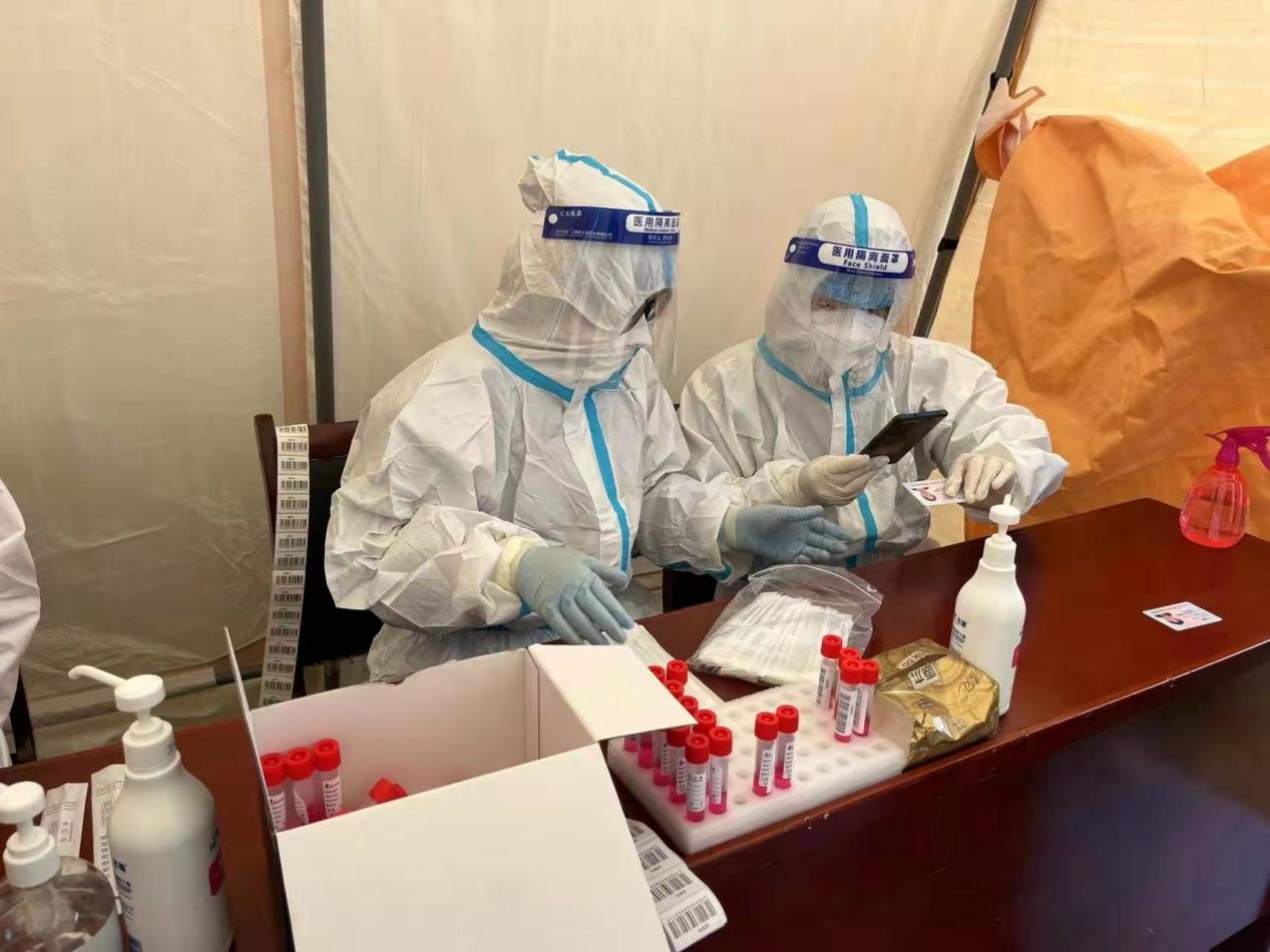 3月17日,句容启动三轮全员核酸检测行动。公司行政人事部周勇、庞辛看到志愿者招募通知后,第一时间响应报名,并成功当选为志愿者。早晨6:20分,天气好像也受疫情影响了一样,一扫前几日的春光明媚,开启了凄风冷雨的倒春寒模式。在简陋的帐篷里,二人和医护人员正在进行检测前的准备工作。一边核对着桌子上的棉签、试管、条形码,一边讨论着可能出现的意外情况。7:00检测工作正式开启,扫描试管标签、采集人员信息,引导人员检测,扫描封管。……整整四个小时里,二人机械、精准的重复着上述动作,协助医护人员完成了500多人的核酸采集工作。当二人完成交班,脱下重重防护设备时,脸上的汗珠和口罩勒痕犹如勇者的勋章一样熠熠生辉。
