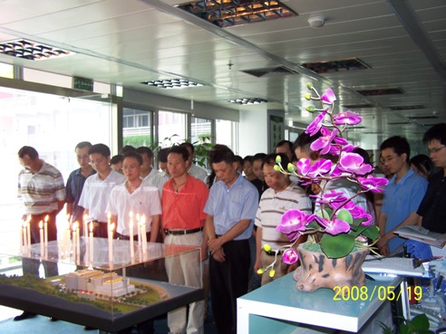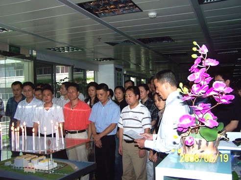 为了表达Ebpay钱包领导和员工对地震遇难同胞的深切哀悼,5月19日下午2点28分,在集团公司执行董事黄建中致哀悼词后,集团公司全体领导和员工在集团公司办公室面向点燃的“心形”蜡烛为灾区死难同胞肃立默哀三分钟。